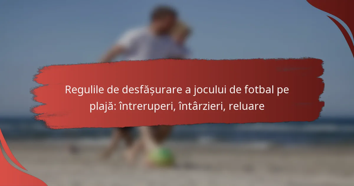 Partidele de fotbal pe plajă pot suferi diverse întreruperi care afectează desfășurarea jocului, făcând esențial ca jucătorii, oficialii și spectatorii să înțeleagă cum sunt gestionate aceste situații. Întârzierile pot apărea din cauza accidentărilor, condițiilor meteorologice sau problemelor administrative, fiecare necesitând protocoale specifice pentru reluarea jocului. Respectarea acestor reguli asigură siguranța și corectitudinea, permițând continuarea jocului fără probleme după orice întrerupere.